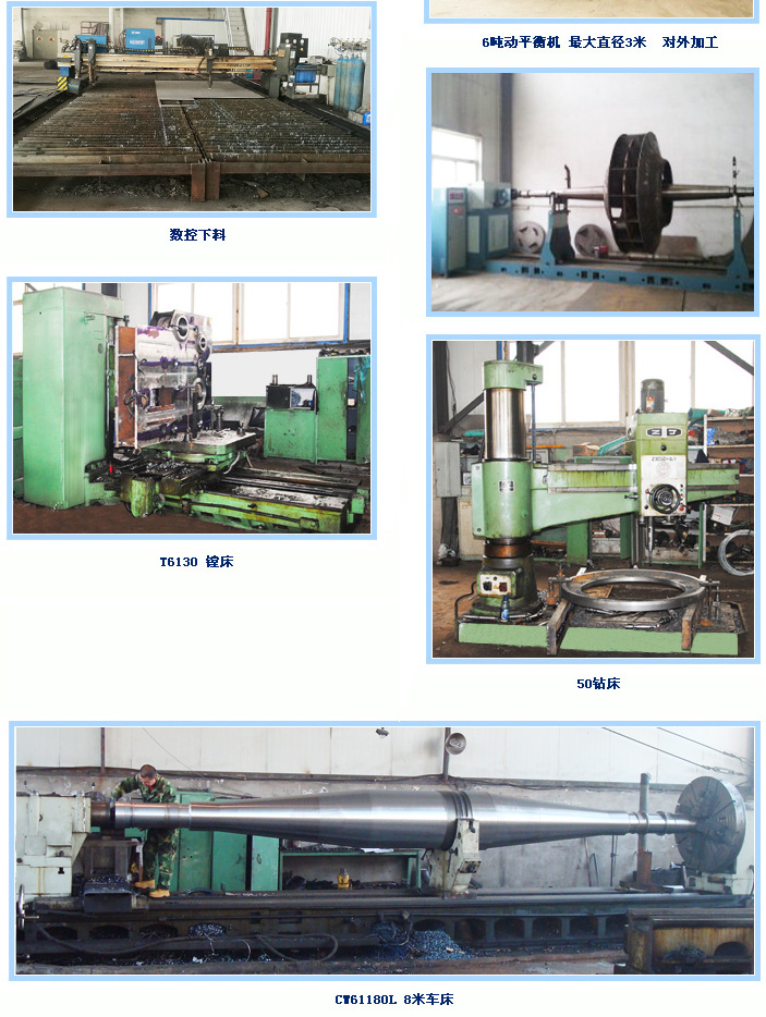 雙柱立式車床 最大加工直徑4米,臥室銑鏜床PC6113,400噸沖床,500噸摩擦壓力,500噸油壓機(jī),6噸動(dòng)平衡機(jī) 最大直徑3米 對(duì)外加工,數(shù)控下料,T6130鏜床,50鉆床,CW61180:L 8米車床